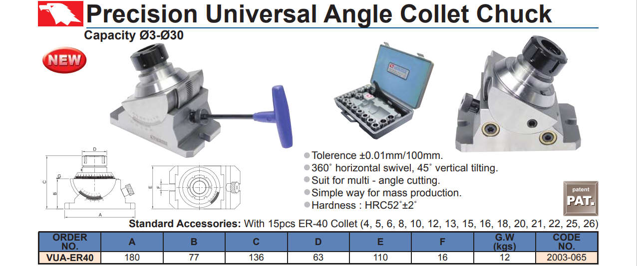 BÀN CHIA ĐỘ CHÍNH XÁC KIỂU COLLET   VERTEX  VUA-ER40