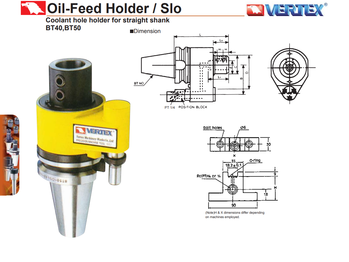 Bầu kẹp dao có lỗ tưới nguội bên trong mã BT40SLO32-165, BT40SLO40-165, BT50SLO32-150, BT50SLO40-150 và phụ kiện OC32-20, OC32-25, OC40-25, OC40-32 hãng Vertex sản xuất với chất lượng cao, sản phẩm có đầy đủ kiểu size cho bạn lựa chọn. Độ chính xác cực cao 0.005m/m.