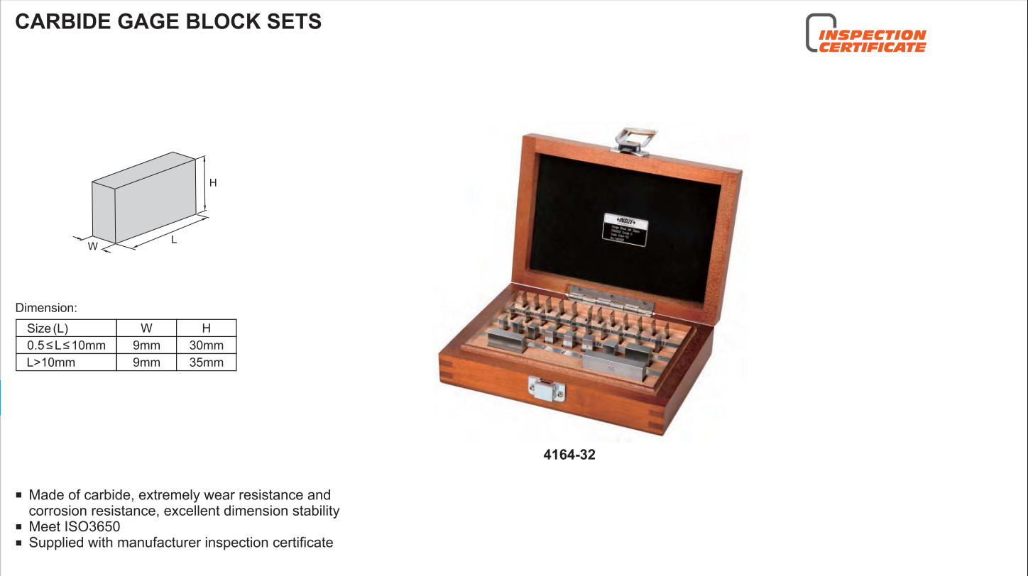 Bộ block thử INSIZE là một miếng thép đã gia nhiệt, được mài chính xác về kích thước, cũng như về hình học như độ phẳng và song song giữa các bề mặt