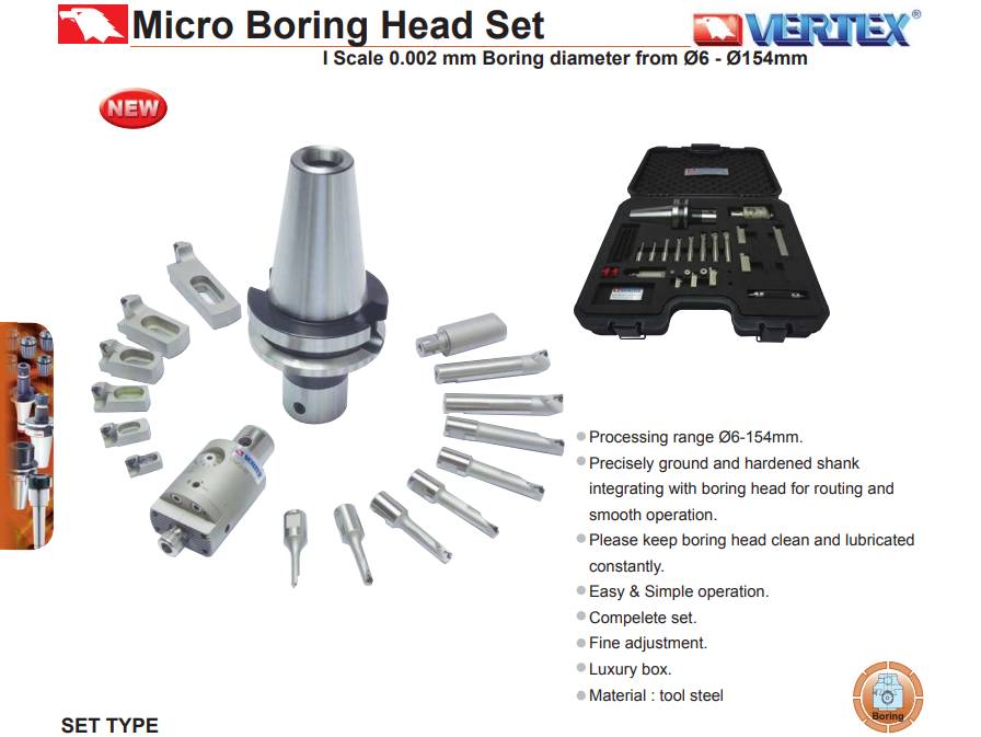 – Bộ đầu doa micro VBH của VERTEX: VBH55-BT40, VBH55-BT50 sử dụng thích hợp doa chính xác các lỗ có đường kính từ 6 – 154mm.