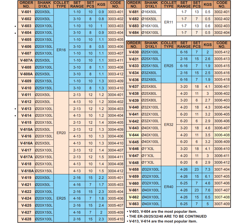 BỘ ĐẦU KẸP KIỂU TRỤ THẲNG collet ER V-601 V-602 V-603 V-604 V-605 V-606 V-607 V-607A V-608 V-608A V-609 V-610 V-611 V-612 V-613 V-614 V-615 V-615A V-616 V-616A V-617 V-617A V-618 V-618A V-619