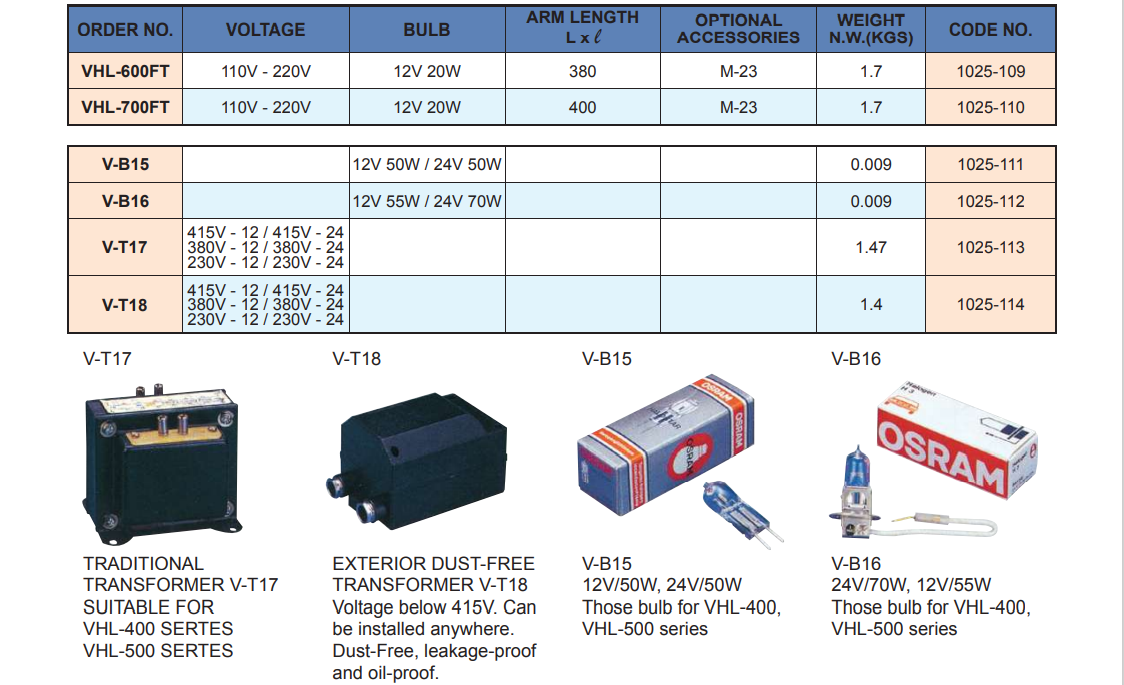 Mã sản phẩm: VHL-600FT; VHL-700FT