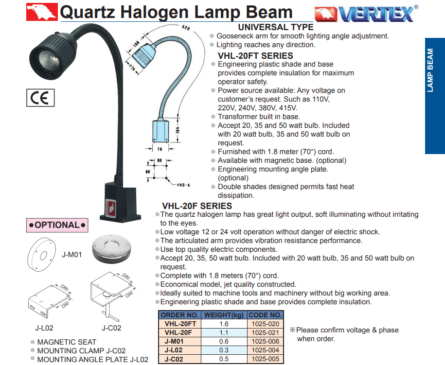 – Phụ kiện mua thêm để lắp đế đèn là: J-L02, J-C02.
