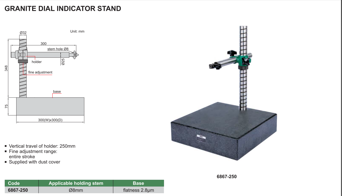 Đế granite gá đồng hồ so được hãng INSIZE sản xuất với chất lượng cao, sản phẩm được sử dụng nhiều trong các xưởng gia công cơ khí, được phân phối trên toàn quốc