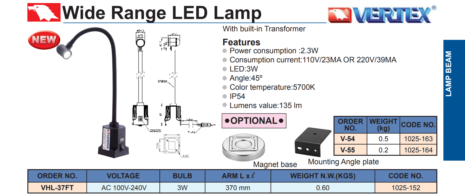 Đèn LED tập trung Vertex VHL-37FT là kiểu đèn làm việc chống nước, chống bui. Được dùng để lắp đặt trên các máy CNC, máy công cụ và các máy gia công khác.