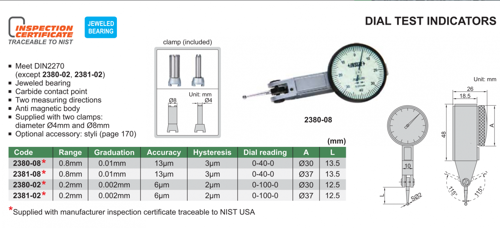 Đồng hồ so chân gập INSIZE là loại đông hồ so ứng dụng đo độ dơ, độ lệch trong gia công và sản xuất cơ khí