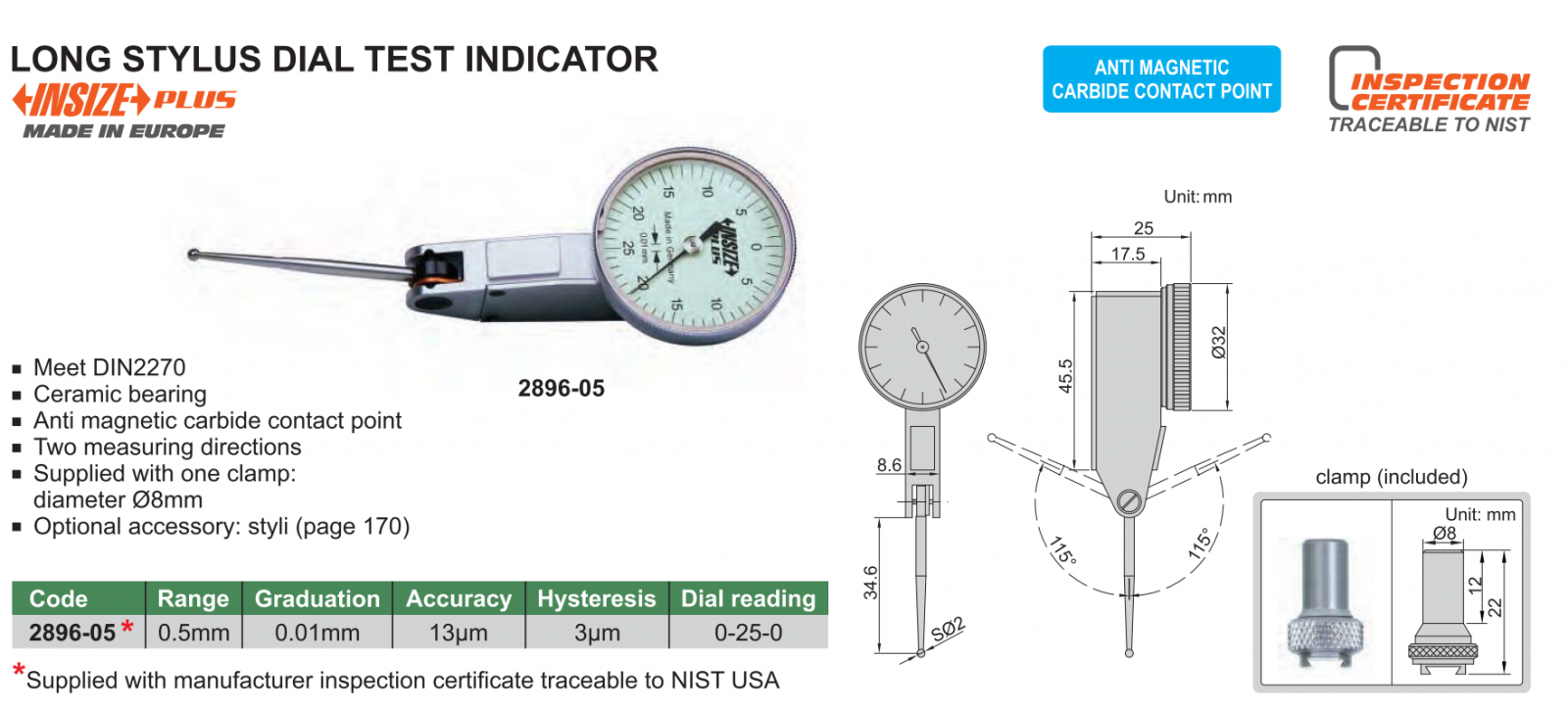 Đồng hồ so chân gập INSIZE là loại đông hồ so ứng dụng đo độ dơ, độ lệch trong gia công và sản xuất cơ khí