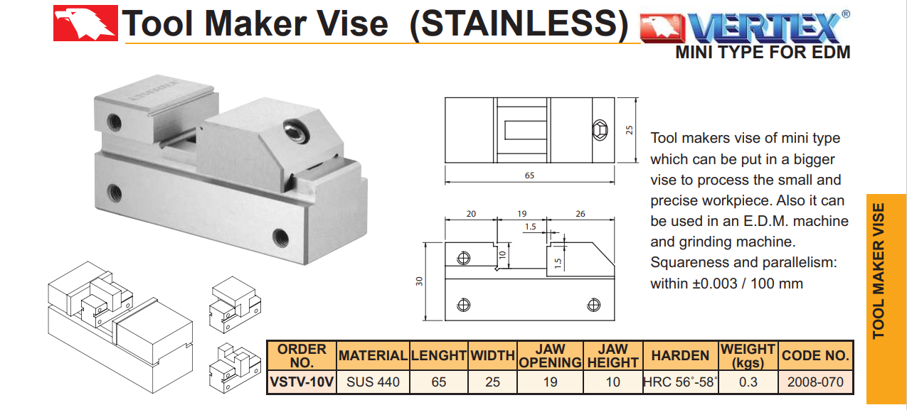 Ê tô máy EDM Vertex VSTV-10V với vật liệu là thép không gỉ, dùng để gá kẹp các chi tiết trong quá trình xung, cắt dây….