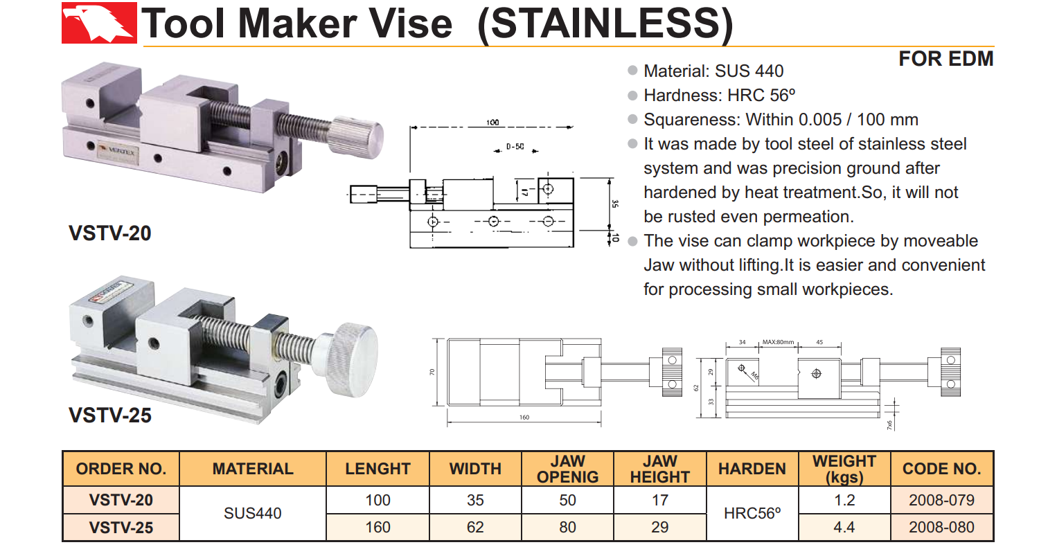 Ê tô máy EDM Vertex VSTV-25 với vật liệu là thép không gỉ, dùng để gá kẹp các chi tiết trong quá trình xung, cắt dây….