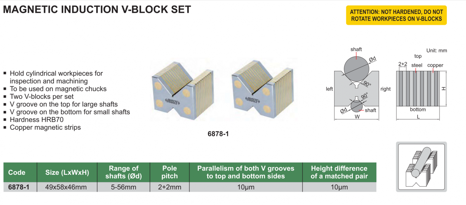 Khối V từ cố định INSIZE 6878-1 , MAGNETIC INDUCTION V-BLOCK SET 6878-1