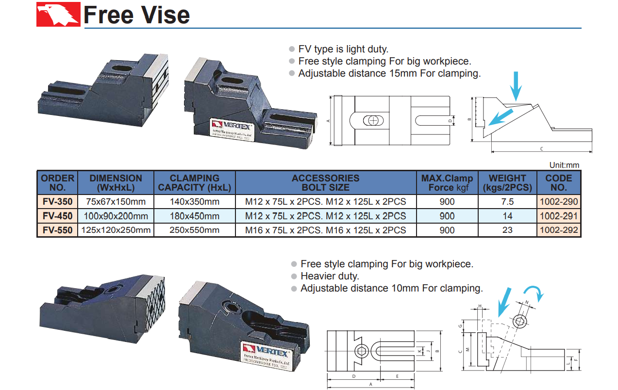 Má kẹp ê tô có cấu trúc đơn giản, an toàn, đáng tin cậy và chắc chắn để kẹp phôi. Sử dụng má kẹp loại này để kẹp những phôi quá lớn đối với má kẹp ê tô bình thường