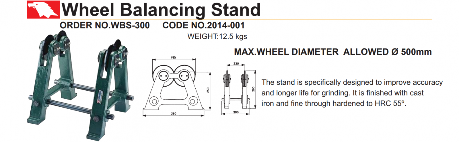 Thiết bị cân bằng đá mài mã WBS-300 được nhập khẩu trực tiếp từ Vertex, CO, CQ được cấp bởi phòng thương mại Đài Loan, sản phẩm có kết cấu đơn giản, dễ sử dụng, sản phẩm có thể cân bằng động của đá mài một cách chính xác. Hàng được phân phối trên toàn quốc.