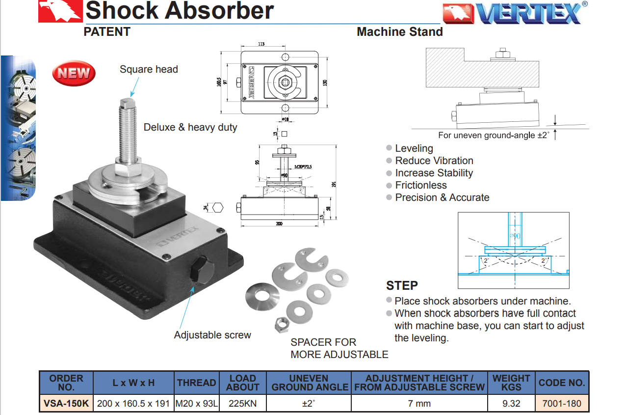 Thiết bị giảm rung động máy mã VSA-150K được hãng Vertex sản xuất với chất lượng cao, chuyên dùng cho việc giảm độ rung động trong quá trình gia công cơ khí.