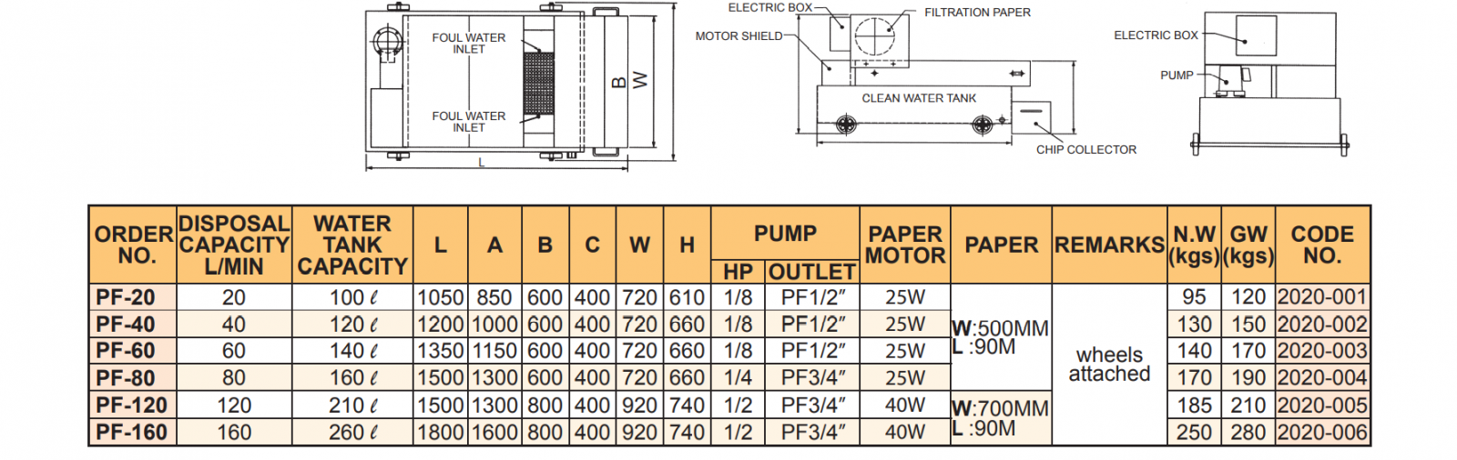 – Thiết bị lọc dung dịch làm mát bằng giấy lọc PF-20, PF-40, PF-60, PF-80, PF-120, PF-160 có thể lọc được cả tạp chất kim loại và phi kim.