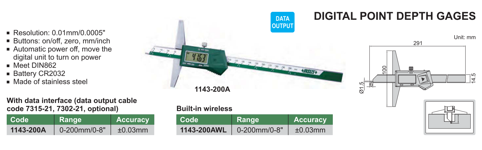 Thước đo sâu điện tử INSIZE là đồ dùng có nhiều chức năng phạm vi đo rộng, độ chính xác tương đối cao, dễ sử dụng, giá cả rẻ…