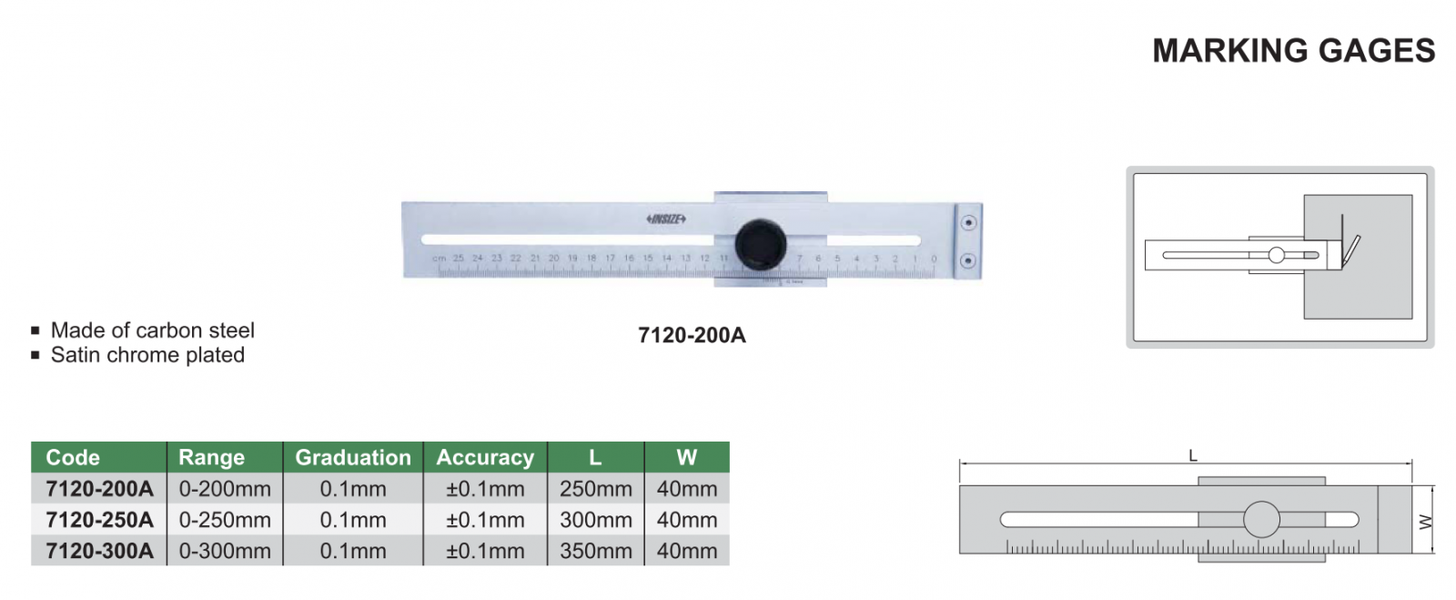 Thước lá INSIZE 7120-200A , MARKING GAGES 7120-200A